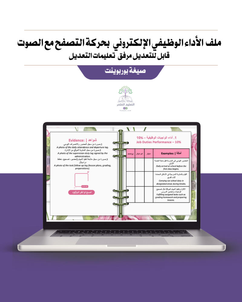 ملف أداء الوظيفي لمعلمة اللغة الإنجليزية الكتروني