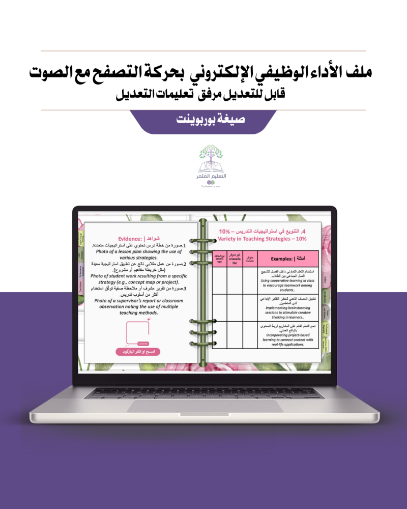 ملف الأداء الوظيفي الجديد لمعلمات اللغة الإنجليزية، يهدف إلى توثيق الشواهد ، إبراز الإنجازات، ومتابعة الأداء الوظيفي بشكل منظم. يتضمن محتويات تدعم التميز في التعليم وتتماشى مع أهداف وزارة التعليم ورؤية المملكة 2030