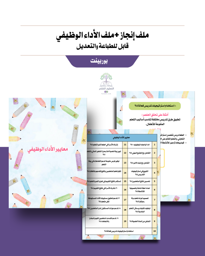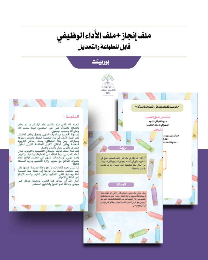 ملف إنجاز +ملف أداء وظيفي - معلمة رياض الأطفال - أقلام ملونه