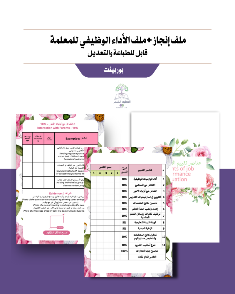 - مناسب لتقييم الأداء الوظيفي وفق المنصة الوطنية (نور – فارس)
