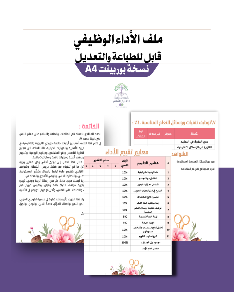 ملف الأداء الوظيفي – لمعلّمة التربية الأسرية والمهارات الحياتية