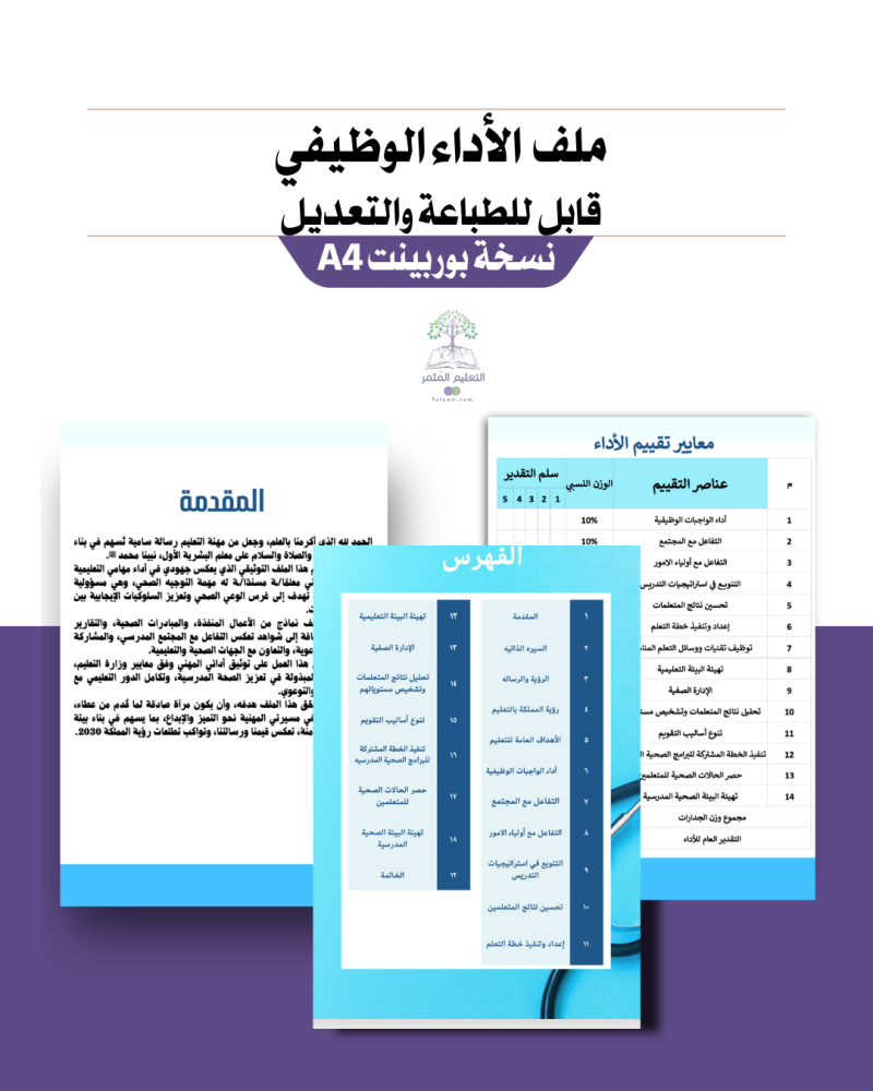 ملف الأداء الوظيفي لمعلم التوجيه الصحي – إصدار التعليم المثمر