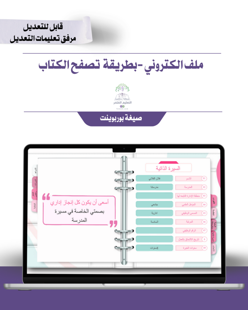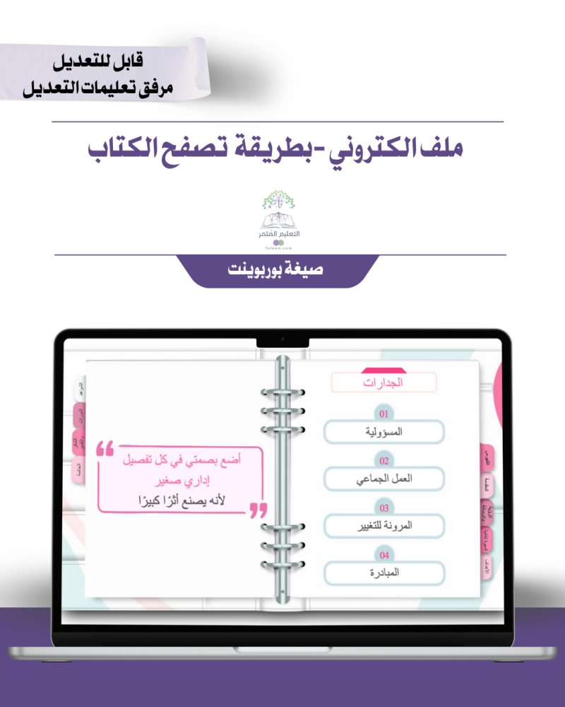 خلي شغلك يحكي عنك. ‏عن ذوقك، عن جودة وجودك، ‏الناس يمكن تنسى الأرقام، تنسى السرعة، تنسى الصخب… ‏لكن ما ينسون شعور الجودة، ولا إحساسهم بأن “هذا الشغل صُنِع بحُب”. ‏فإذا قررت تشتغل… ‏اشتغل كأنك توقّع على قطعة من نورك وهم كذلك في موقع التعليم المثمر ملف إنجاز خياااالي ورائع بحق ،، ألف نجمة وألف شكر