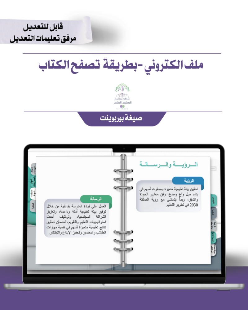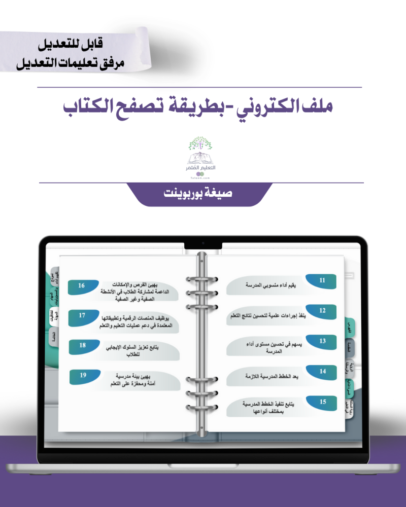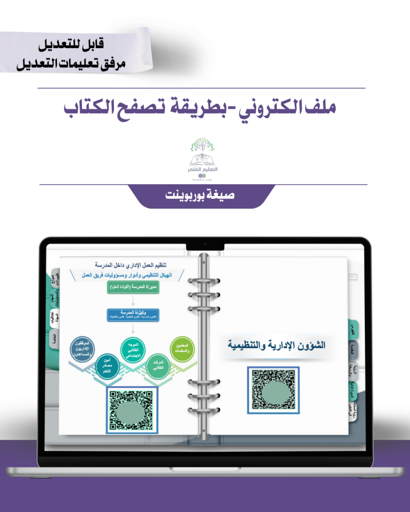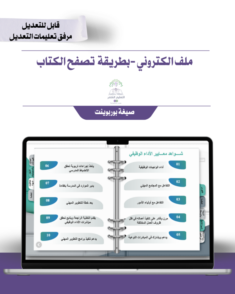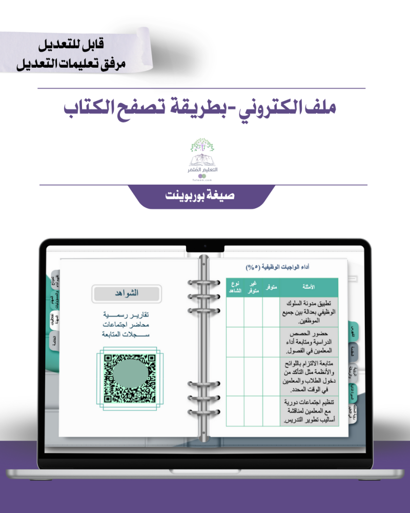 ملف الإنجاز الذكي - مدير\ة المدرسة شامل ملف الأداء الوظيفي مع انشاء الباركودات التفاعلية إلكتروني بقلب الصفحات متحرك